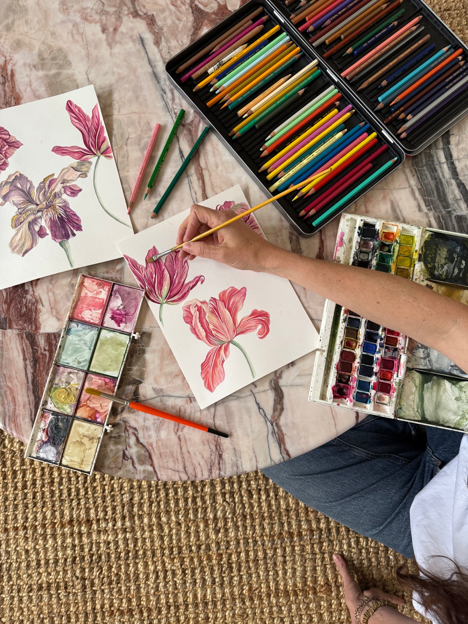 For Alexa Lily’s 2026 collection of Edit covers, Nicky hand drew and painted five illustrations that reflect the soft femininity and sophistication of our brand.